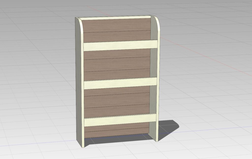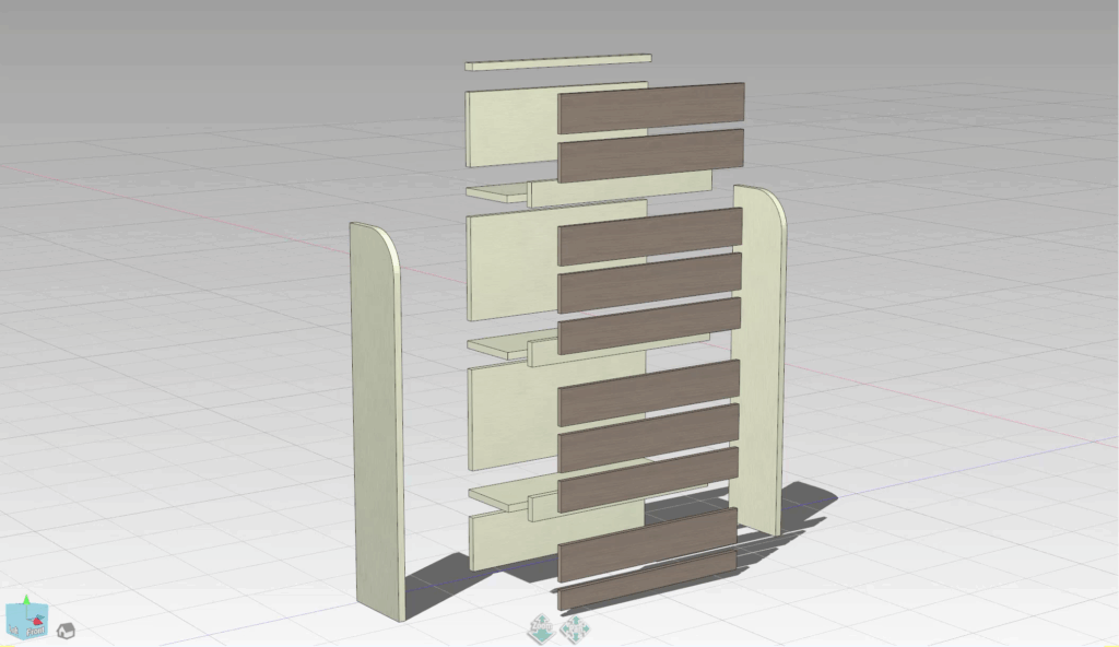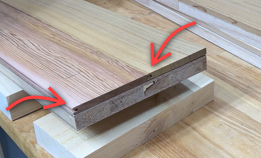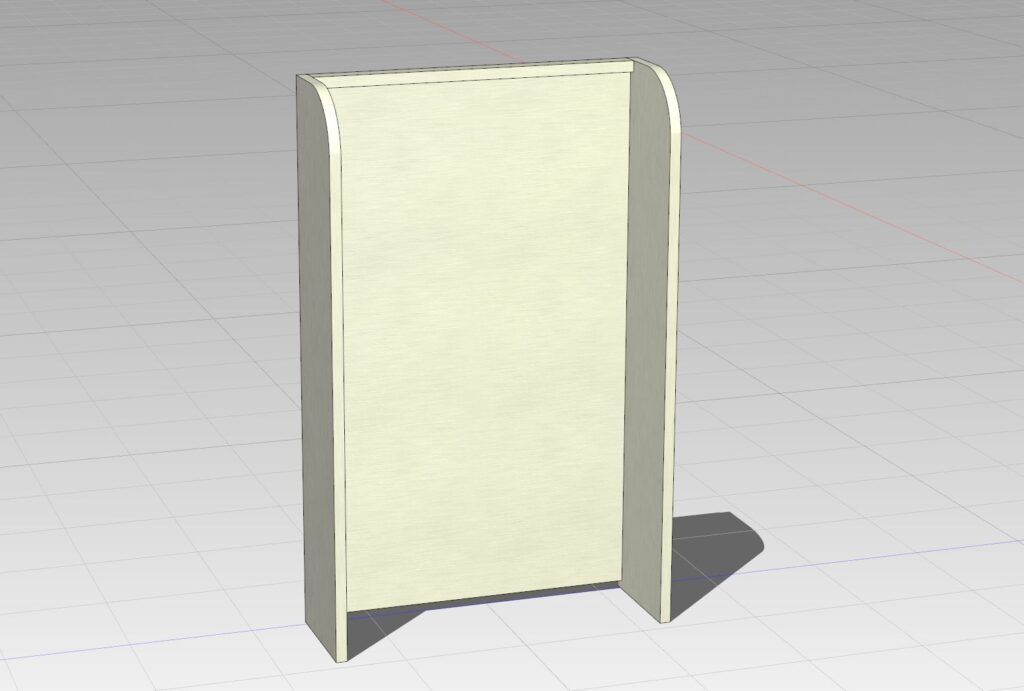 なんでこんな形にしたのか?と言うと、ウエスタンレッドシダーの板をラワン合板に貼り付けた後、まとめてカットする工程をイメージしたからです。
