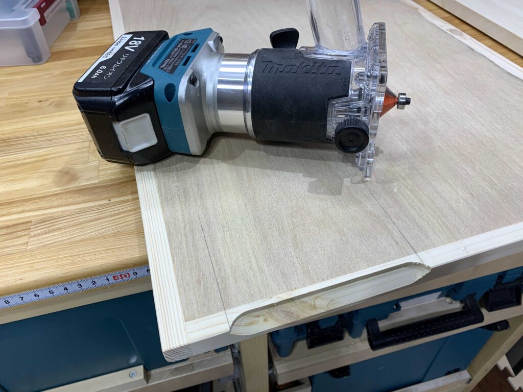 SeamlessLifeではホムセンで買える安価な材料としてt18ラワンランバーコア材をメインに作っていますが、合板の角をトリマーとラウンドビットで削ると中身が見えてしまい、ラウンドしているため木口テープも使えません。