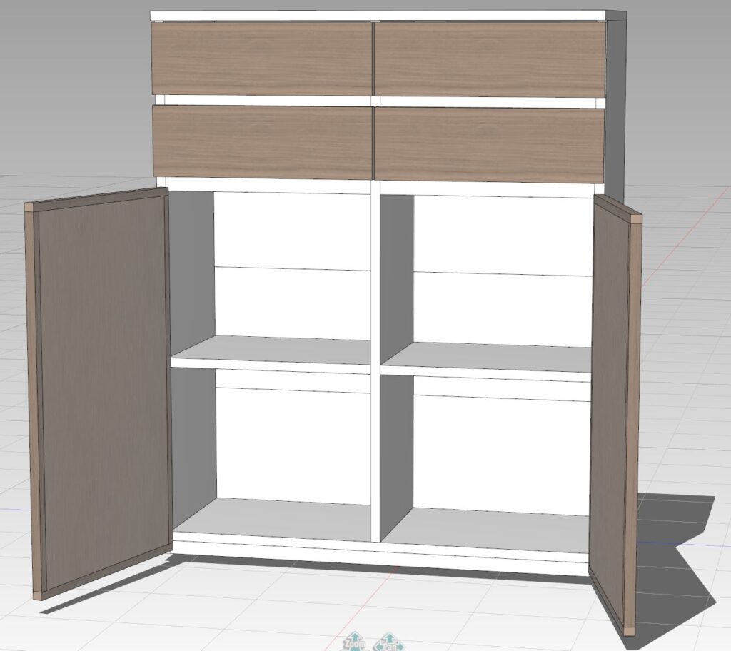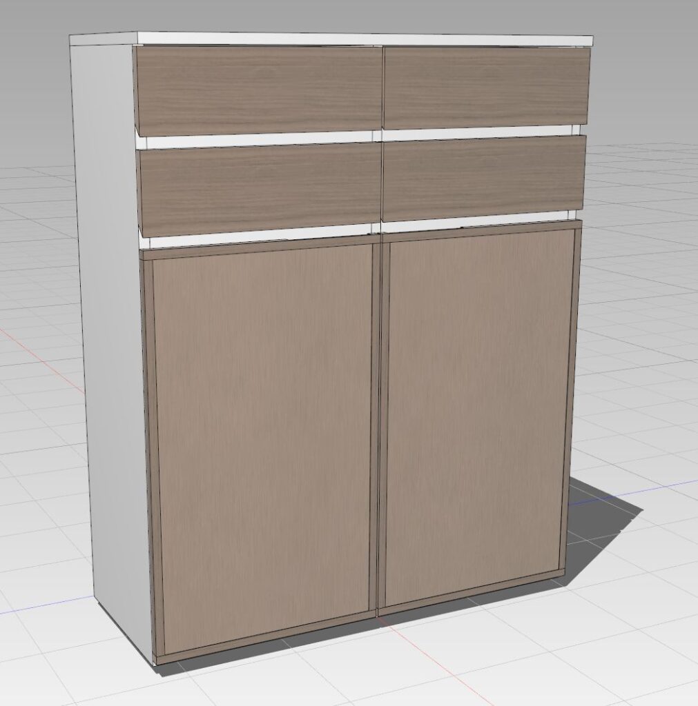 で、ちょうどDIYを初めて日が浅い頃で、本当にちょっとしたものは何個か作ったことがあったのですが色々研究してプランジ丸鋸やらスライド丸鋸やらの基本装備が充実してきたってことで、いざ早速作ってみようってなったのがこのキャビネットです。