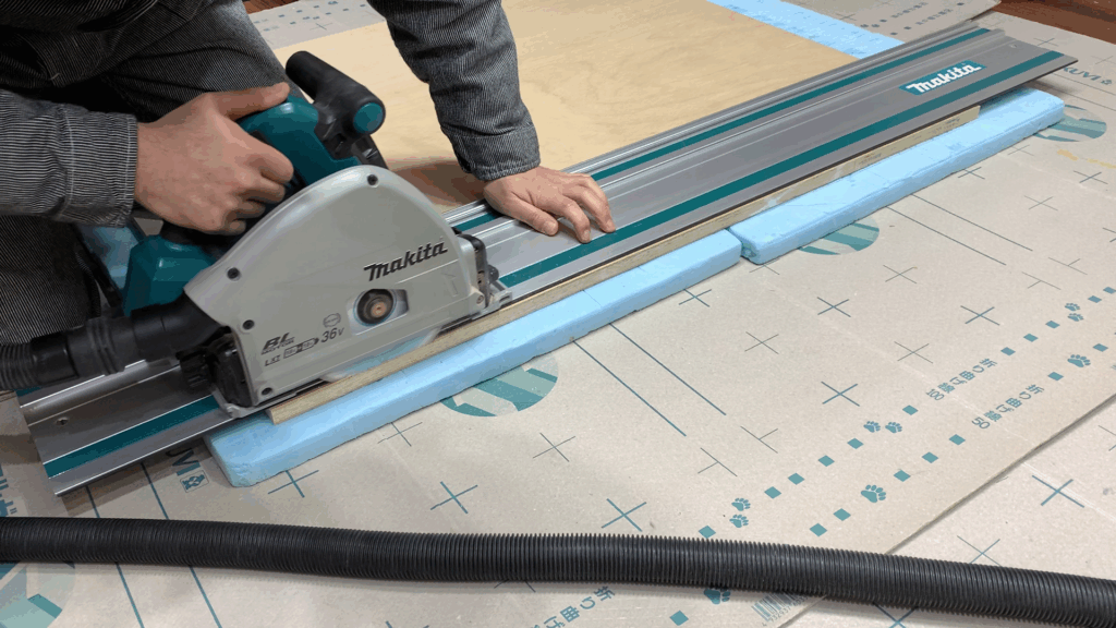 いつも通りの合板メイクなのでいつものプランジ丸鋸とスライド丸鋸で切断し、ドリルで穴空け、ボッシュのサンダーで研磨と言った流れ。詳細は動画見てください。