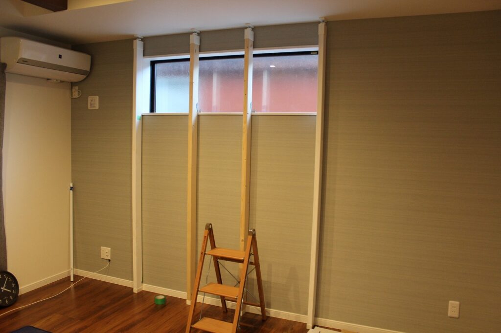 窓でした。入居早々に、ここを潰したいと考えていて、それならばと思って壁を立ててテレビを壁掛けにしようと