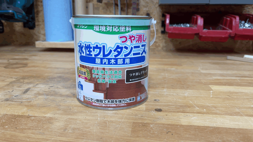 こちらも初挑戦ですが、和信ペイント水性ウレタンニス艶消しブラックを使ってみました。