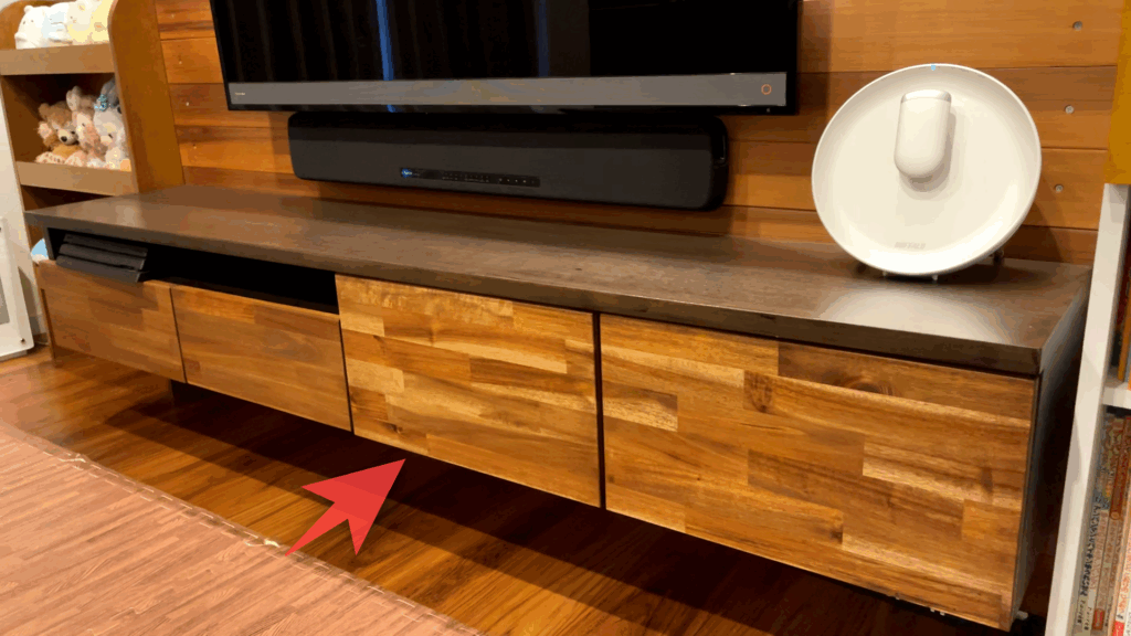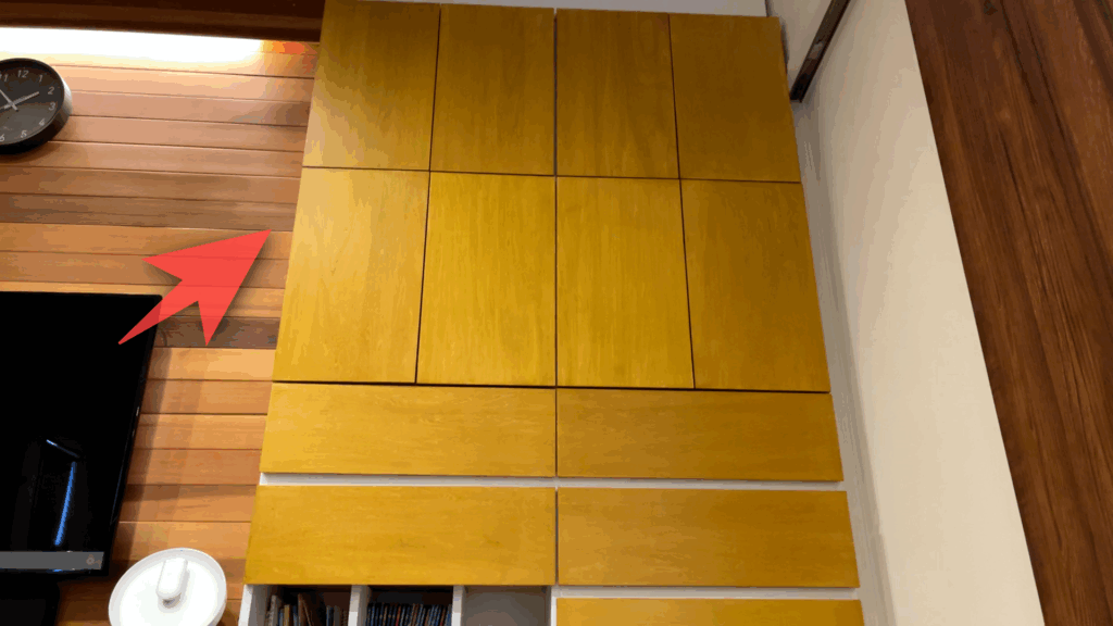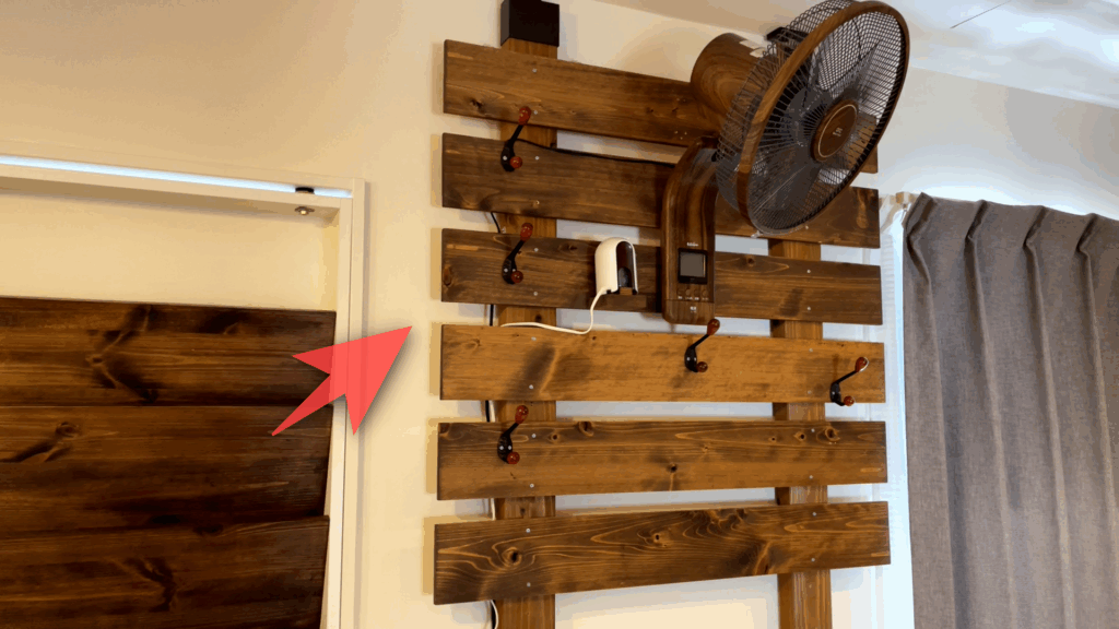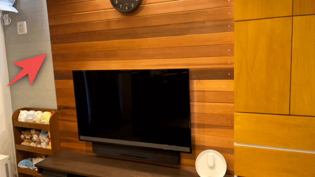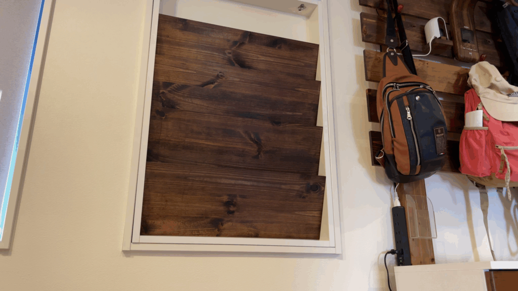 PCデスクでお見せした板壁で使ってます(写真はリビングの壁掛けテレビボード)。