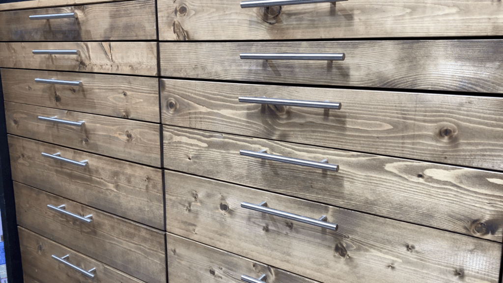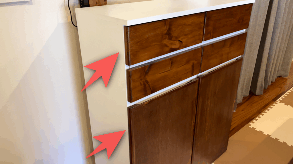 引き出しはSPFですが、下の扉はラワン合板で、両方とも使える組み合わせだということがわかりました。